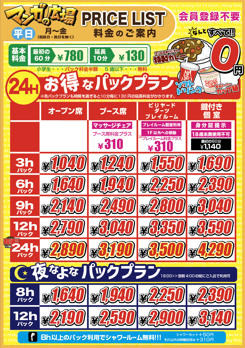 その他パック料金等は変更ございません。